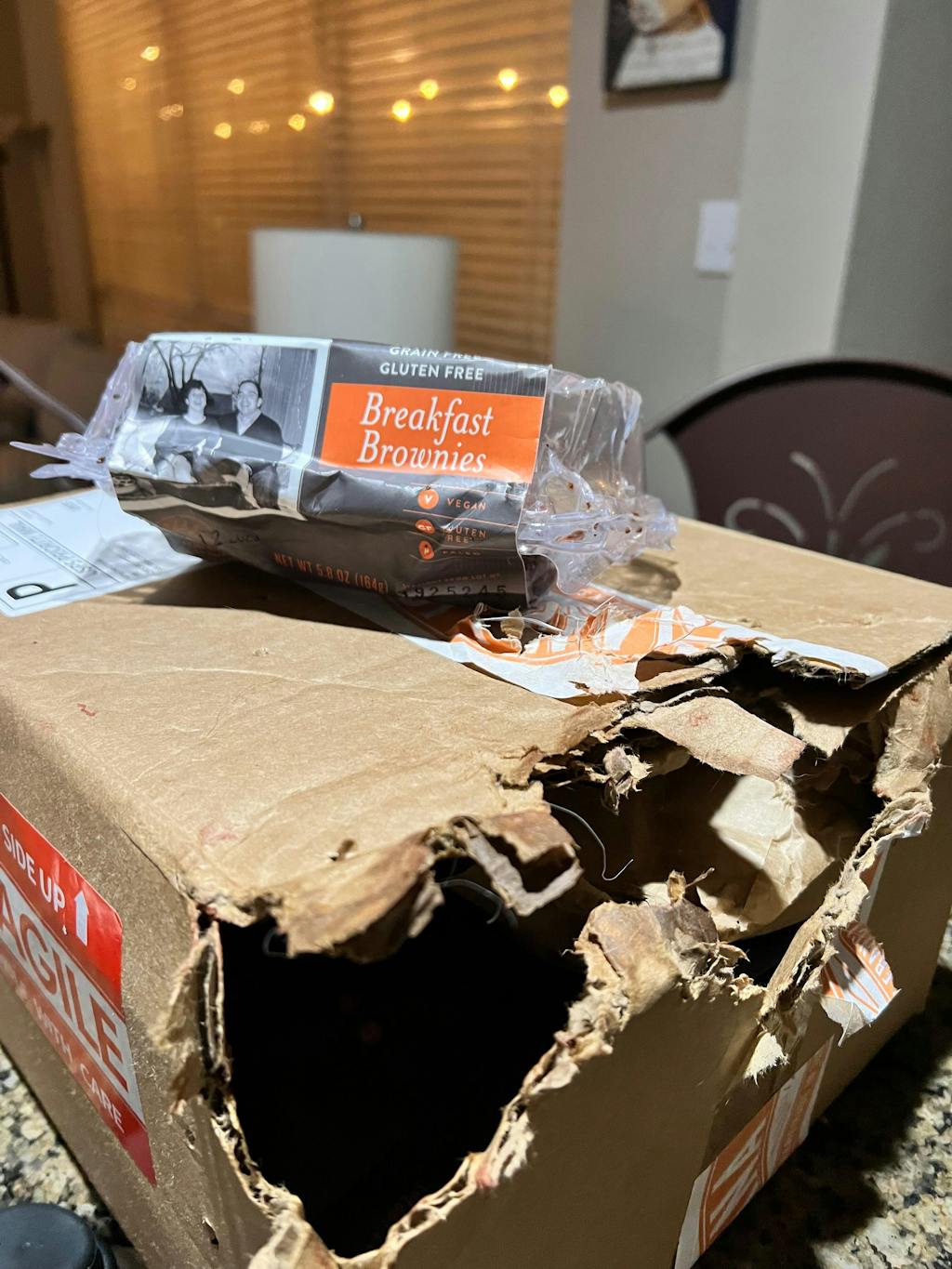 Thank you so much for the kind words! We're thrilled that you received your order quickly and that you and and not your furry friend enjoyed the breakfast brownies. We take pride in providing fresh and delicious products for our customers. Thank you for choosing us and we hope the box gets opened by you next time Mark!